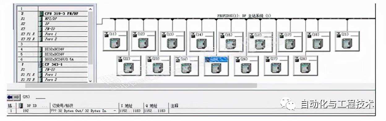 (2)寻找I/O访问错误,通过查看访问地址,以及硬件组态信息,发现缓冲区所涉及到的地址为PROFIBUS网络中子站(EM277)的地址。这些子站在单个设备中,由于生产需要,没有生产的设备需断电。因此程序在寻址的时候没有找到相应硬件,从而产生报警。