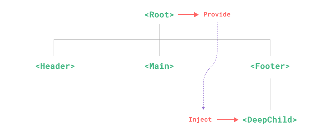 为了解决这个问题,Vue3提供的依赖注入机制,只需要在父组件提供(provide)依赖,任何层级的后代组件注入该依赖即可。