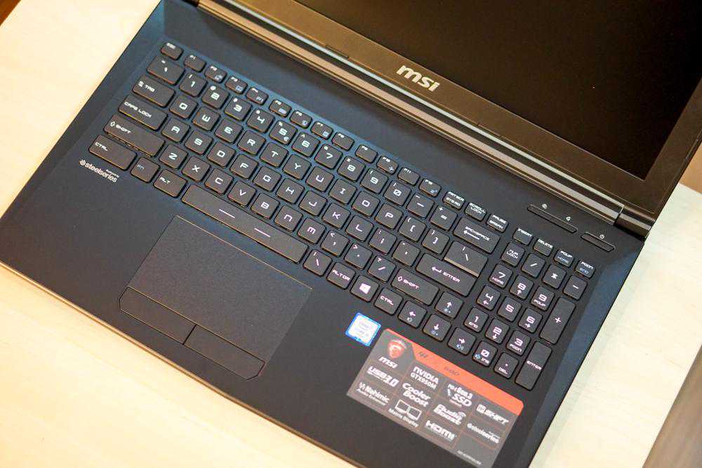 对于一款游戏本来说,除了机器应有的配置之外,键盘的按键舒适度,是玩家考虑这款笔记本的重要因素之一。微星GL62采用了赛睿(SteelSeries)专业游戏键盘,键盘采用了103键,主键位+小键盘区的布局。按键键程较长,敲击手感非常不错,当然和机械键盘的按键手感上还是有一定的差距。另外可能由于成本的限制,这款产品取消了键盘背光灯组,确实有些遗憾。