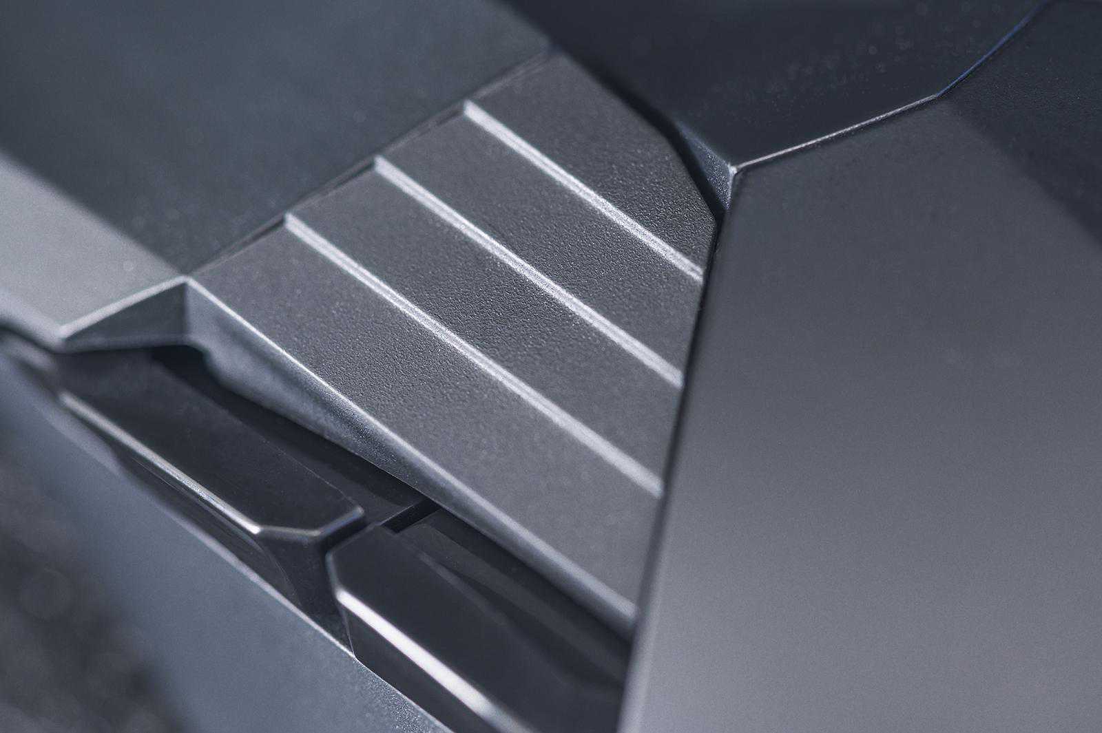 前包围采用了经典的三段式结构,两侧雾灯区域为黑色蜂窝状装饰面板,搭配通风孔设计可以进一步减少车轮处的空气乱流,降低风噪。