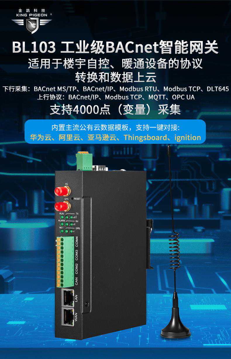 bacnet网关bl103的技术特点:bacnet网关采用嵌入式操作系统,稳定可靠,数据处理能力强。它可以实现楼宇自动化系统中各种设备的协议转换,如西门子S7-200PLC到BACnet、BACnetms/tp到BACnetIP、MODBUS到BACnet、BACnet到OPC到上位机、BACnet到mqtt协议到云平台等