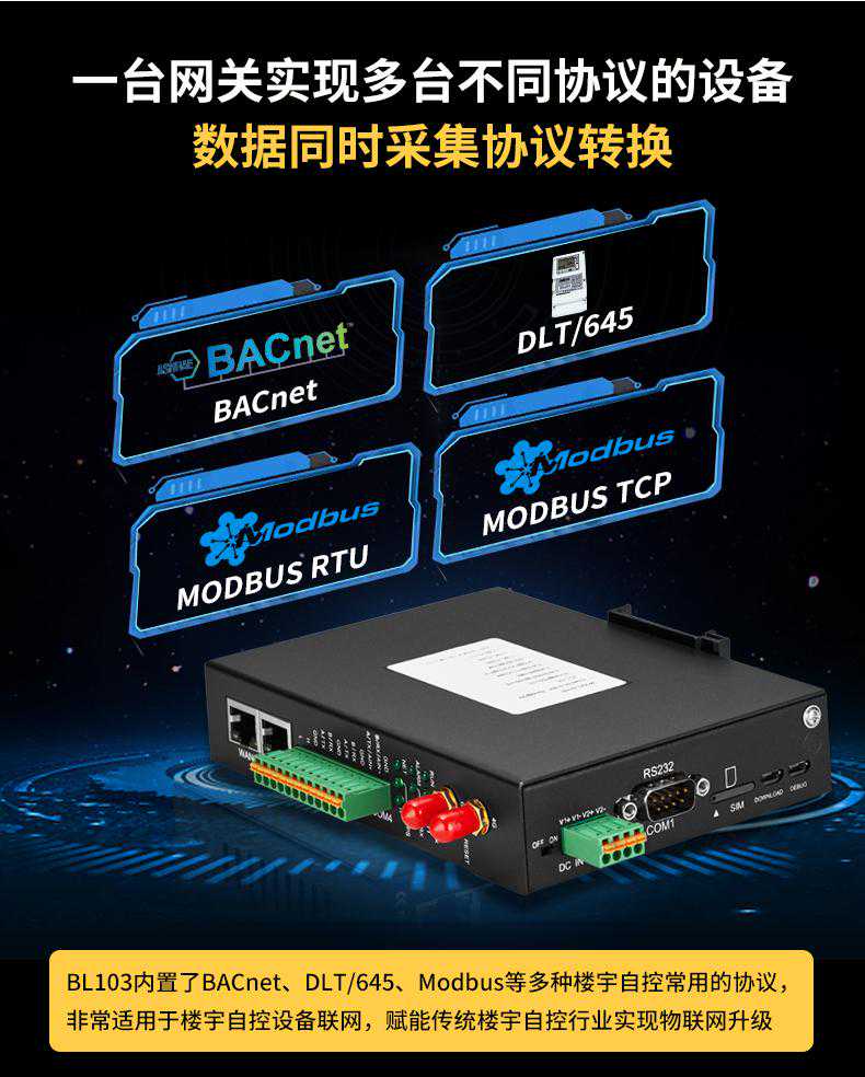 通过BACnet网关bl103,可以快速实现楼宇自动化系统的系统集成。Modbus协议可传输至bacnet/ip、PLC可传输至bacnet、bacnet可传输至bacnet/ip、bacnet可传输至OPC、bacnet可传输至mqtt等