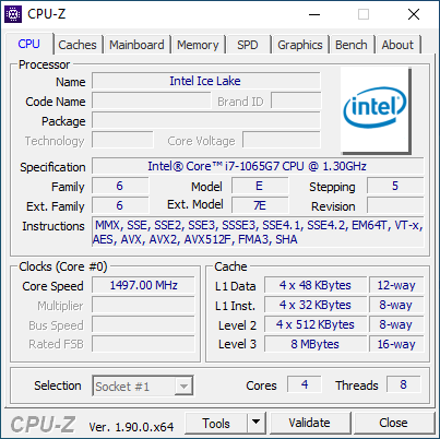 紧接着我们就来聊一聊YOGAC940的核心部件——十代酷睿IceLake芯片。从检测软件可知我们评测的机型是酷睿i7-1065G7处理器,最大特点除了采用10nm制程工艺外,依靠全新"SunnyCove"微架构,通过更深(Deeper,缓存更大)、更宽(Wider,执行管线更多)、更智能(Smarter,更好的算法)的特性大幅提升了IPC性能,在AI、存储、网络、矢量等方面进行了全方位改进,并在锐炬Plus核显性能上全面提升。