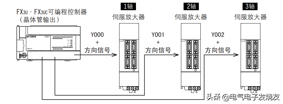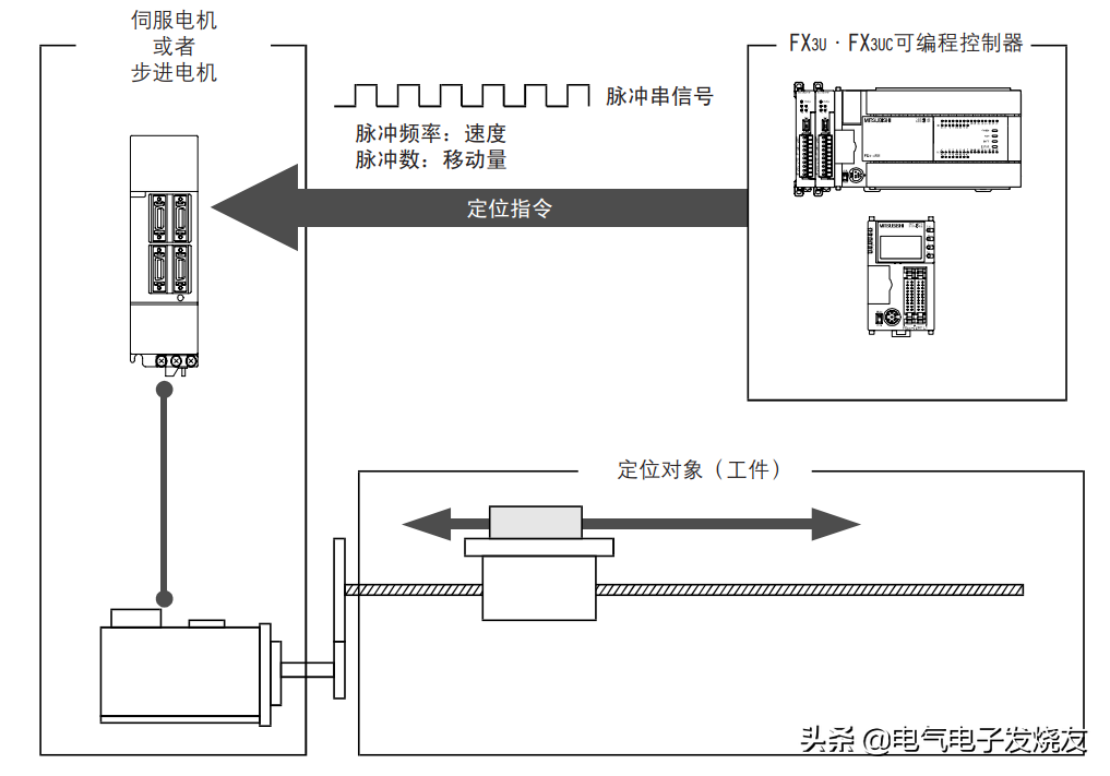 哈喽大家!今天聊聊三菱FX3UPLC定位控制如何使用,大家都知道FX3U本体是可以带3轴的,它可以向伺服电机、步进电机输送脉冲信号,从而使伺服步进电机进行定位控制。