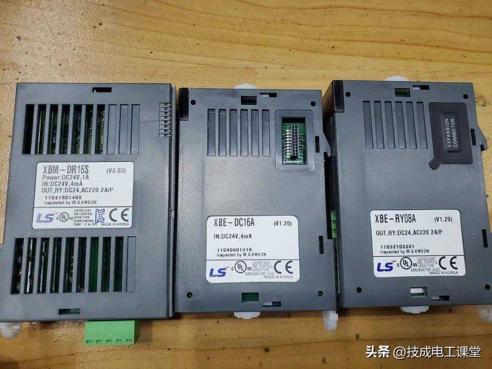 第一个是LS可编程控制器,第二个是LS的XGB系列I/O模块,第三个是输出模块。