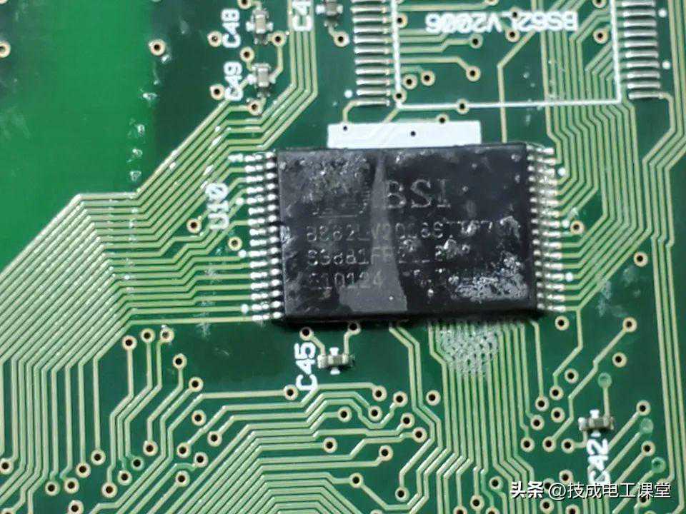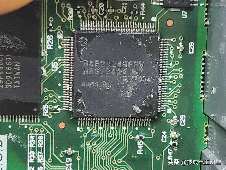 主控芯片U1,丝印H8S/2424是一颗瑞萨的16位高速中央处理器,为实现低成本的系统配置而提供的片儿上外围功能是DAM控制器EXDMA控制器。数据传输控制器串行通信接口IC总线接口同步串行通信单元Ad转换器da转换器和各种定时器。