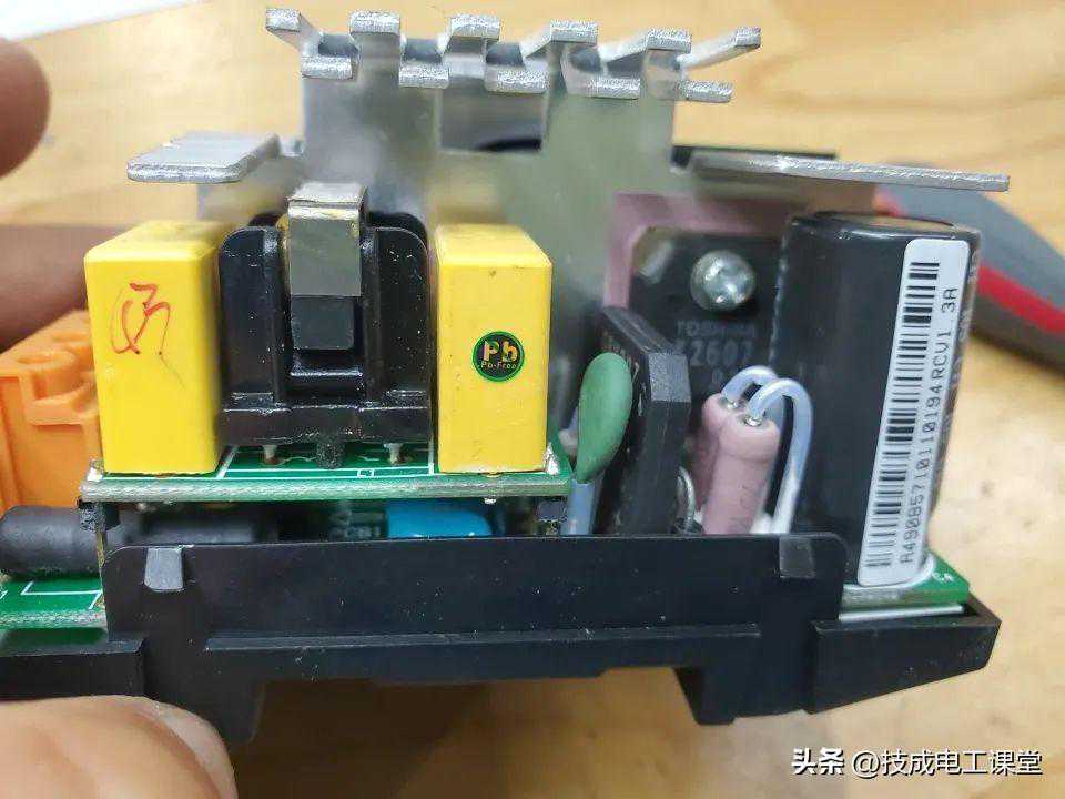 再来看看这个轨道电源,品牌魏德米勒,24V2A输出,最大功率48W,型号8739170000,pcb生产日期2007/11/27,一个16年的电源了。现在在某宝售价100-300左右,不过用料还可以,三信电容,变压器,安规电容,东芝K2607场效管,这堆用料这个价格,大家觉得怎么样?