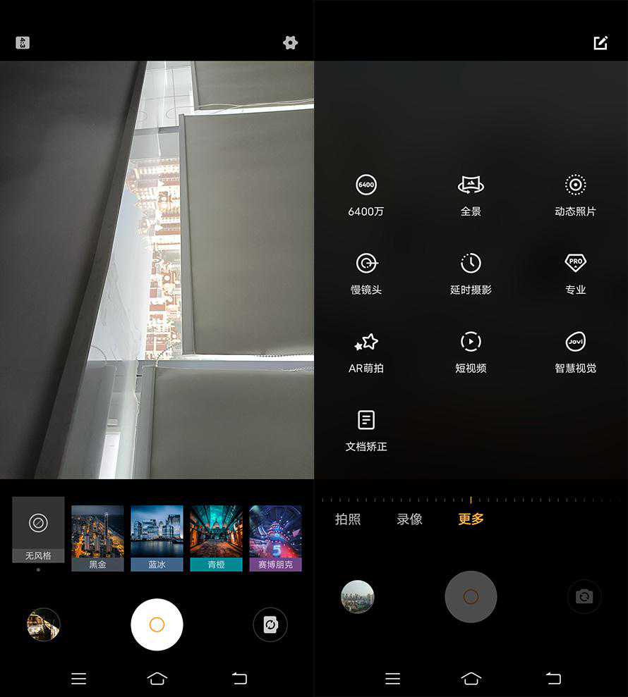 不过对于普通用户来说,更倾向好用的自动化功能,vivoS7e这方面也做得同样出色。比如说在夜景模式中,提供了“黑金”、“蓝冰”、“青橙”和“赛博朋克”四个个性化模式;人像模式中可以设置照片风格,美颜程度,虚化效果。