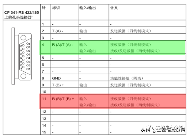 图2S7-300CP341RS422/485通讯口引脚定义