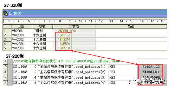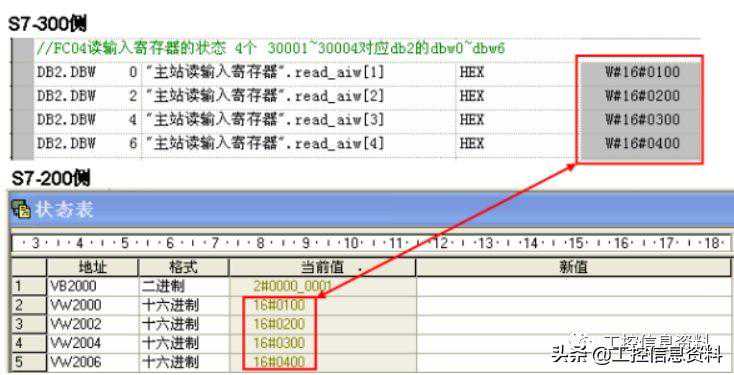 区为40001~40004,对应S7-300数据区为~,并且以此为例说明