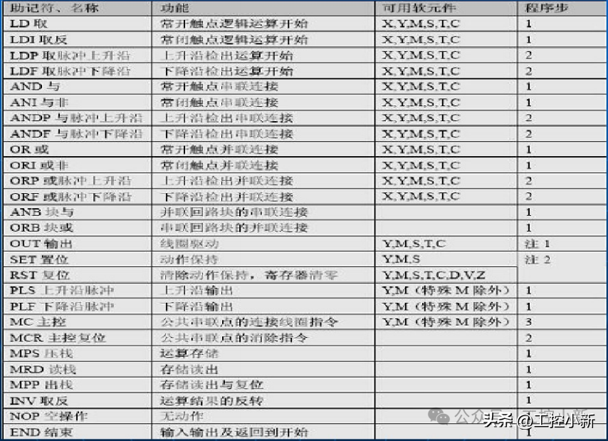 指令语句表编程语言是一种与计算机汇编语言类似的助记符编程方式,由一系列操作指令组成的语句将控制流程描述出来,也由操作码和操作数一起组成。