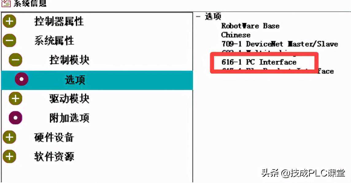 1.MODBUS/TCP基于以太网,故ABB机器人在使用时需要有616-1PCINTERFACE选项。(在机器人主菜单中,选择“系统信息”查看选项)