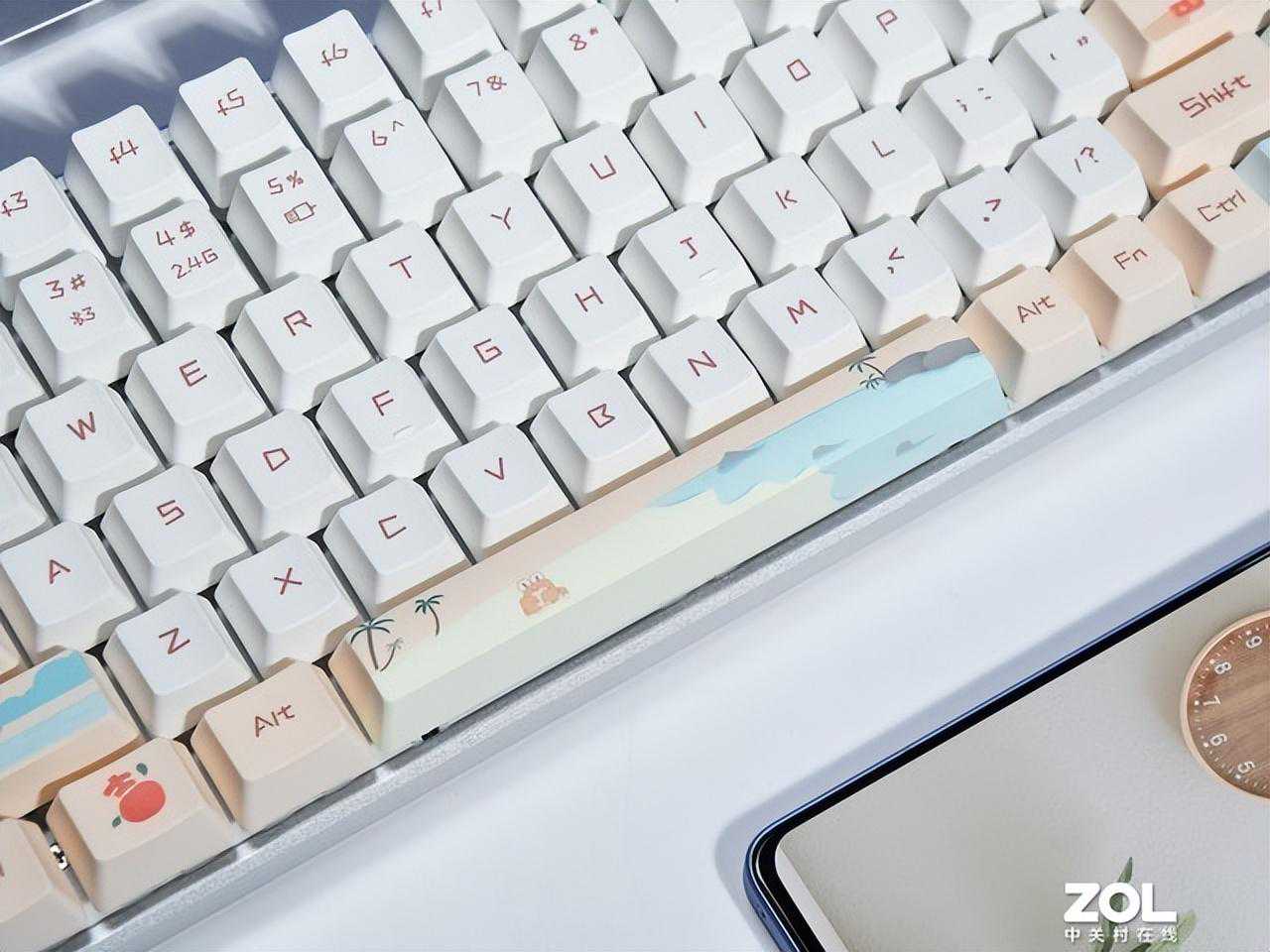 键帽的高度采用OEM高度,符合人体工学设计,它可以与手指的接触面很好地贴合,触感较为舒适。