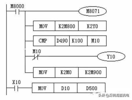 ②当主站点的计算结果(D0+D2)大于100,从站的Y10通。