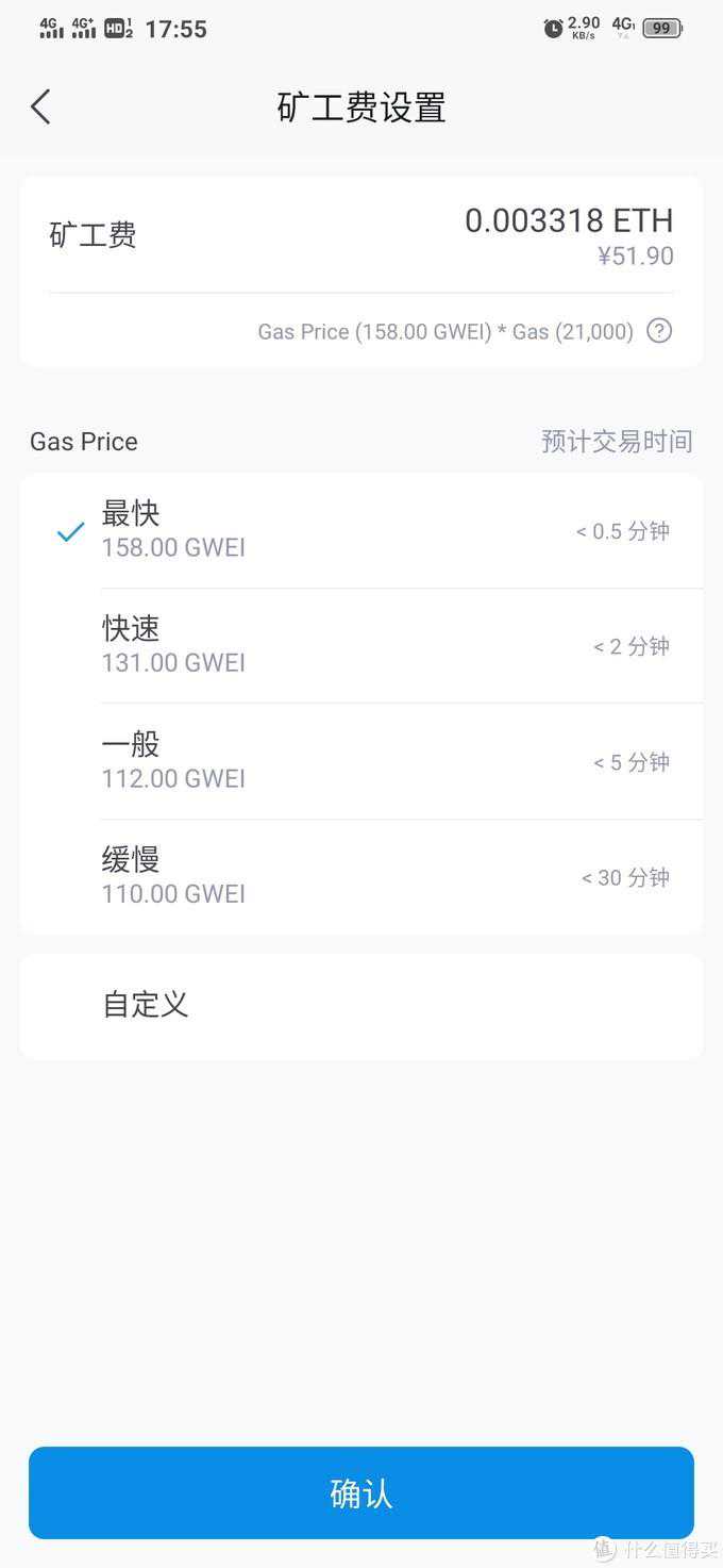 根据充币快慢选择不同,手续费也不同,但最快和最慢时间上可能有半个小时的差距,费用有时候差距还不到几块钱,有时候可能会有十几块,自行斟酌选择。