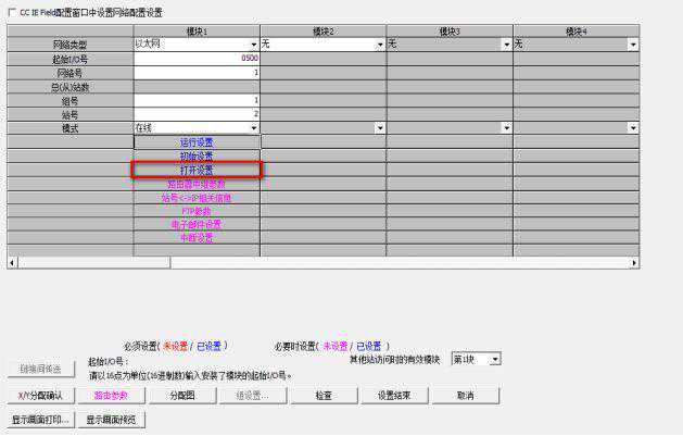 4.双击“打开设置”,按下图设置。完成后点“设置结束”完成设置。