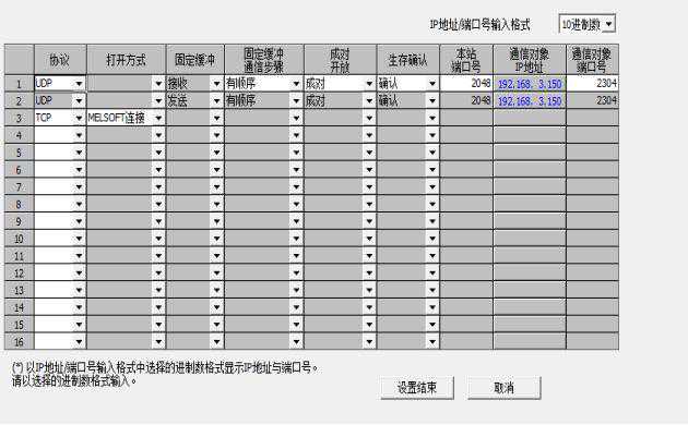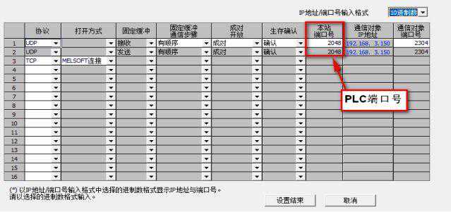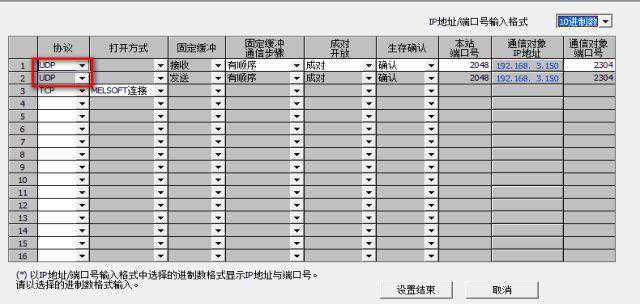 这里组态王和PLC采用的是UDP通信协议,按照这种通信协议方式进行设定。