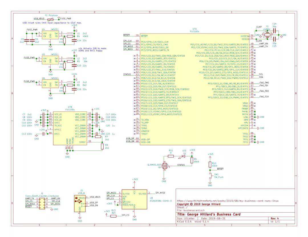 最后,如下图所示,George上传了制作电路板名片的原理图。