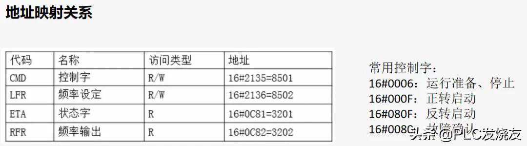 第九步:确认映射地址。%QW2为控制字,%QW3为频率设定。