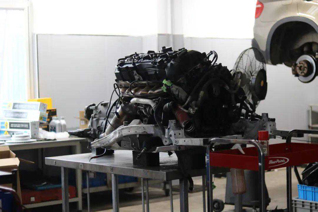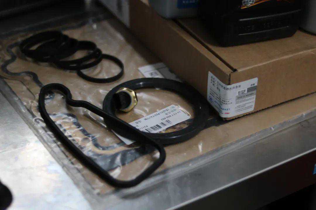 发动机抬下来施工效率很高,各种漏油垫圈、管路小配件都换好了。
