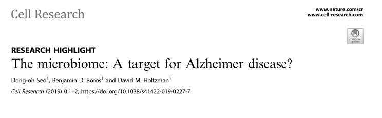 世界知名阿尔茨海默症专家、美国神经学协会主席、华盛顿大学教授等学者在CellResearch同期发表题为“Themicrobiome:AtargetforAlzheimerdisease?”的亮点评述。Holtzman等人表示:毫无疑问,这项研究的证据进一步支持了一种新的观点,即应进一步探索通过GV-971或其他策略调节肠道菌群来延缓AD进展。