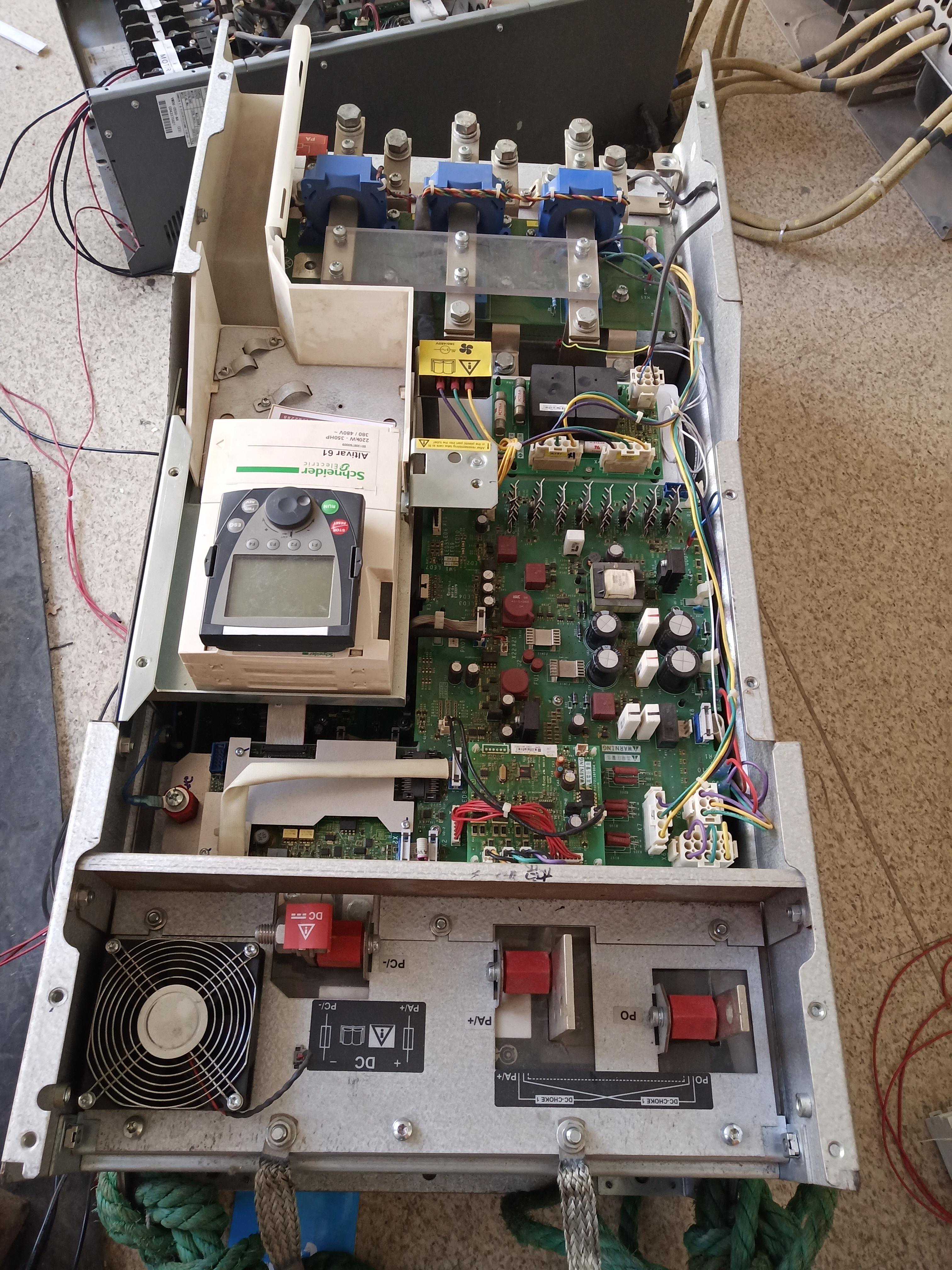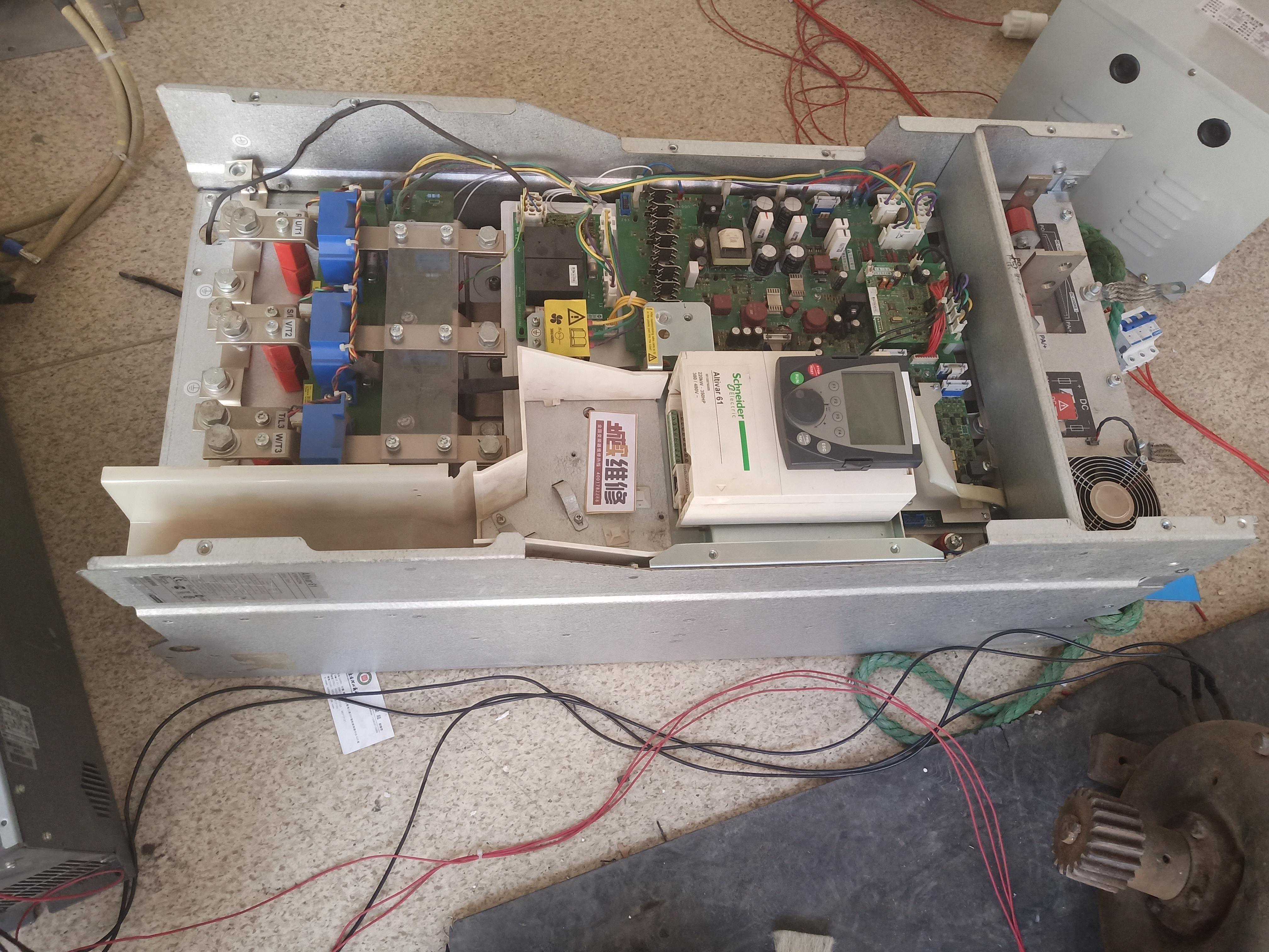 施耐德ATV61变频器维修内部元器件爆炸故障描述:客户的一台施耐德ATV6175KW变频器在工作运行中突然出现炸机,导致其前级空气开关跳闸。能明显闻到烧焦的味道。