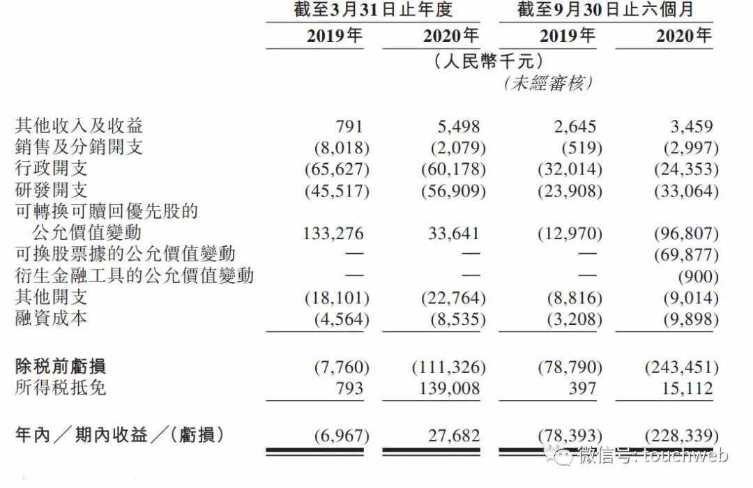 截至2020年3月31日的财年,依生生物期内盈利为2768万元,上年同期的财年期内亏损为696.7万元;依生生物在截至2020年9月30日的半年期内亏损为2.28亿元,上年同期期内亏损为7839万元。