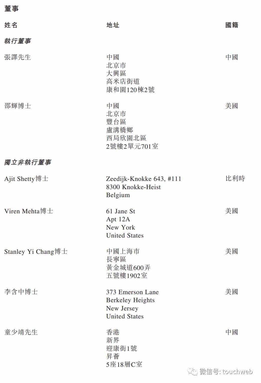 依生生物执行董事为张译、邵辉;独立非执行董事为AjitShetty博士、VirenMehta博士、StanleyYiChang博士、李含中博士、童少靖。
