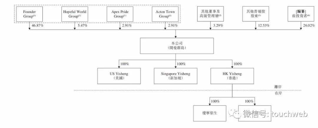 IPO前,FounderGroup、HopefulWorldGroup、ApexPrideGroup及ActonTownGroup,通过一致行动人士协议项下的一致行动安排,合共于公司58.17%的已发行股本总额中拥有法定及实益权益。