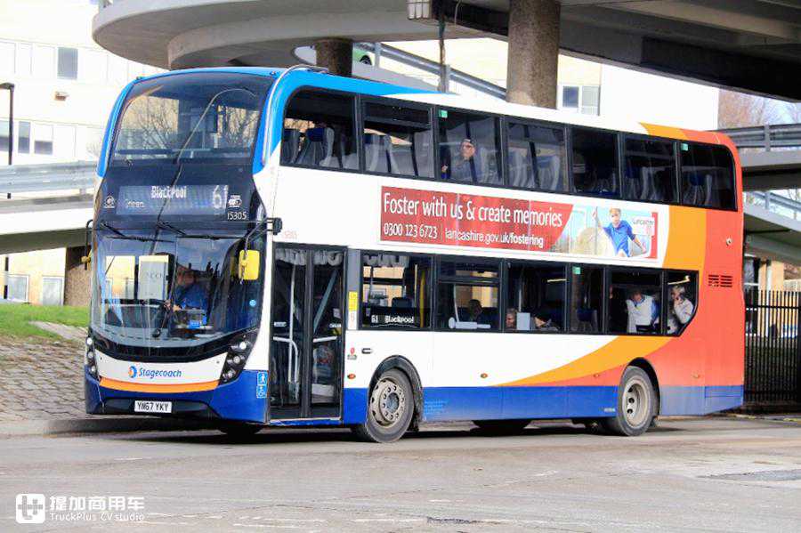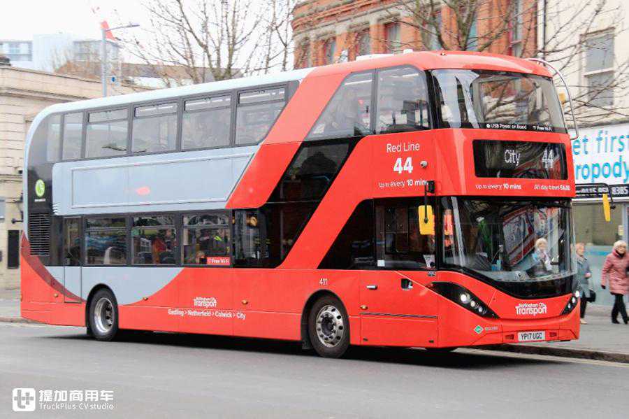 AlexanderDennisEnviro400City车身,除了搭配在自家E40D底盘上以整车形式出现外,还可搭配在ScaniaN280UD和BYDDD底盘上。图中为ScaniaN280UD底盘。