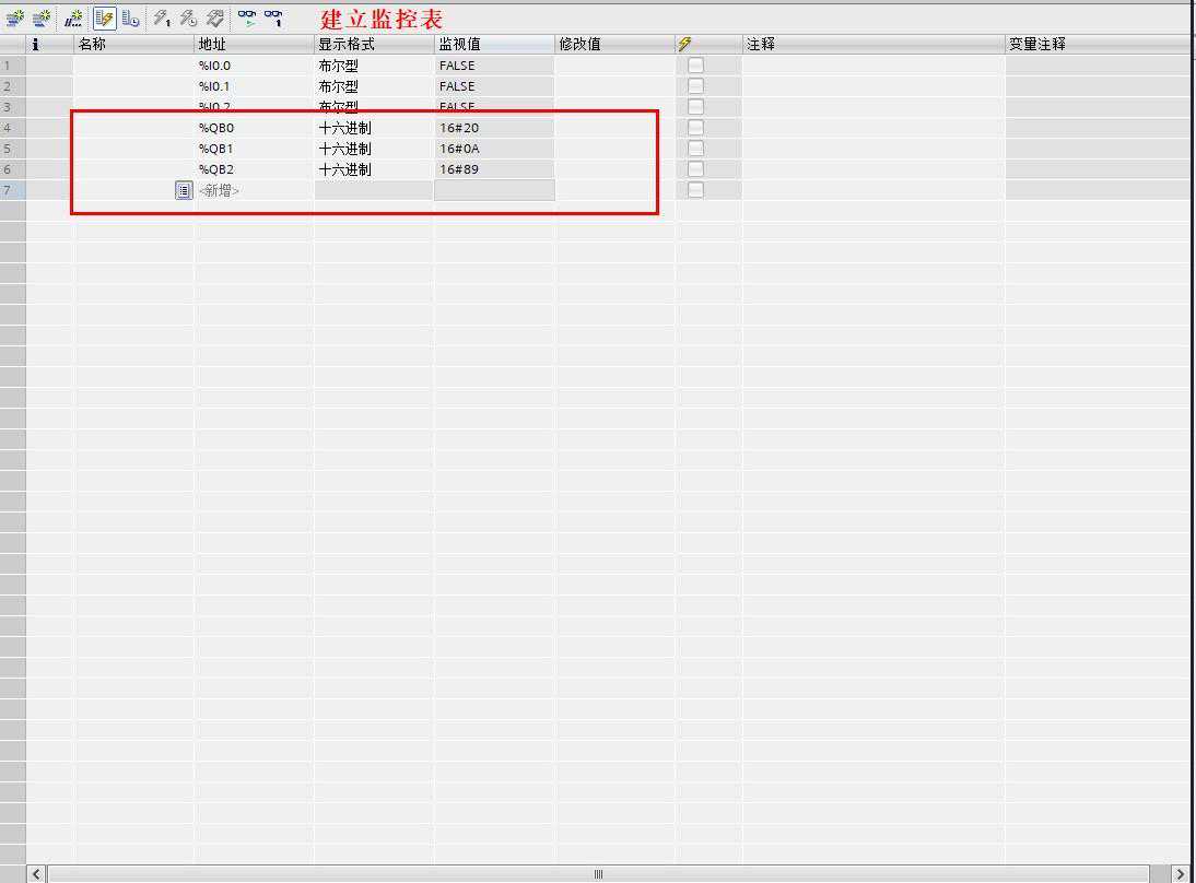 我们在DB31数据块中,分别对,,,值做修改,观察数据监控表%QB0,%QB1,%QB3三个存储器数值均在变化,因此这个程序结果正确。