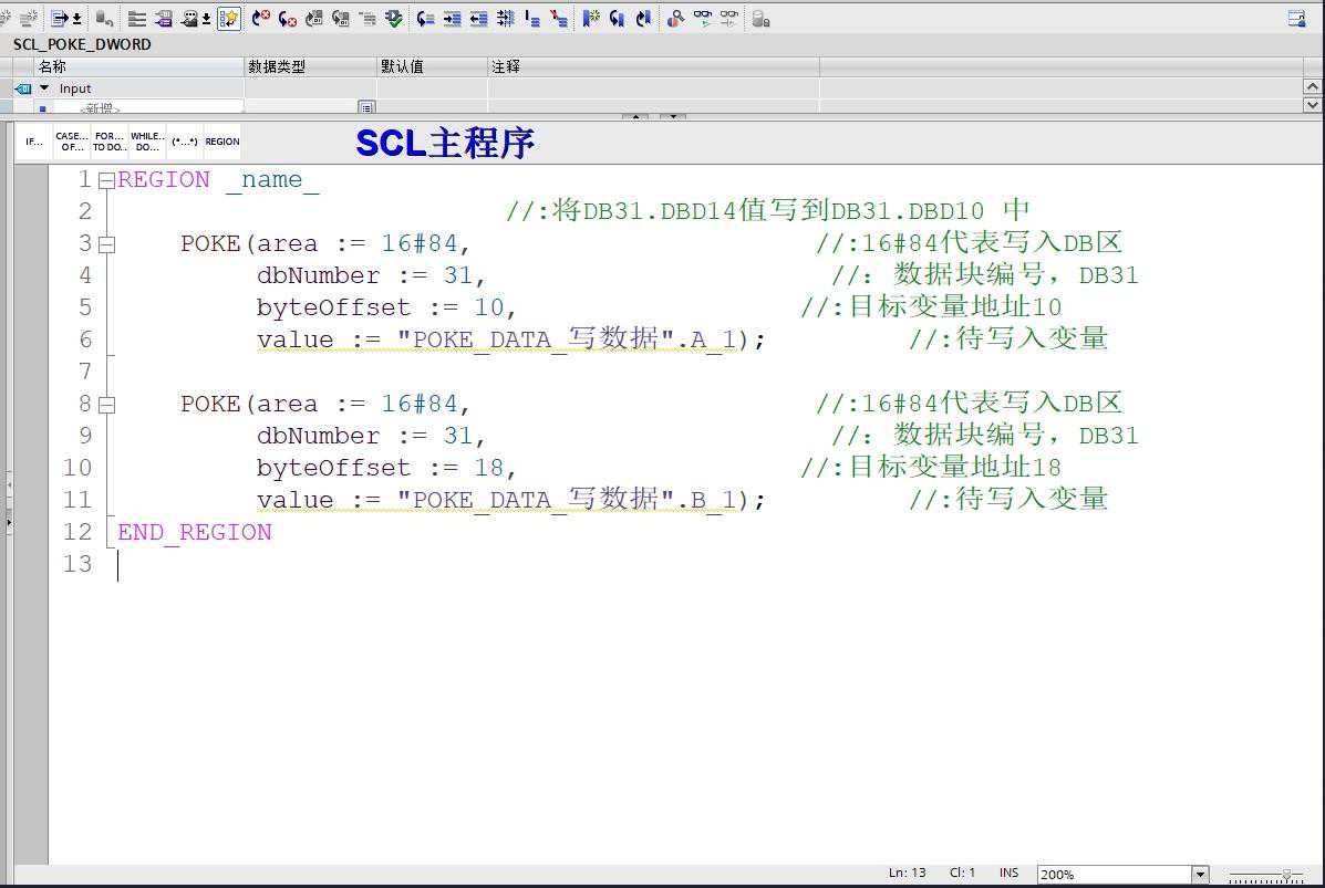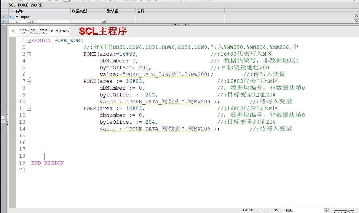 编写SCL程序: