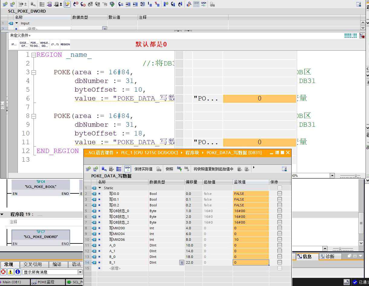 POKE指令可以用来对输入(I)(一般不用),输出(Q),存储器(M)或数据块(DB)变量地址进行写入,不仅支持位,字节,字,双字操作;还可以区域操作,实现区域数据移动。