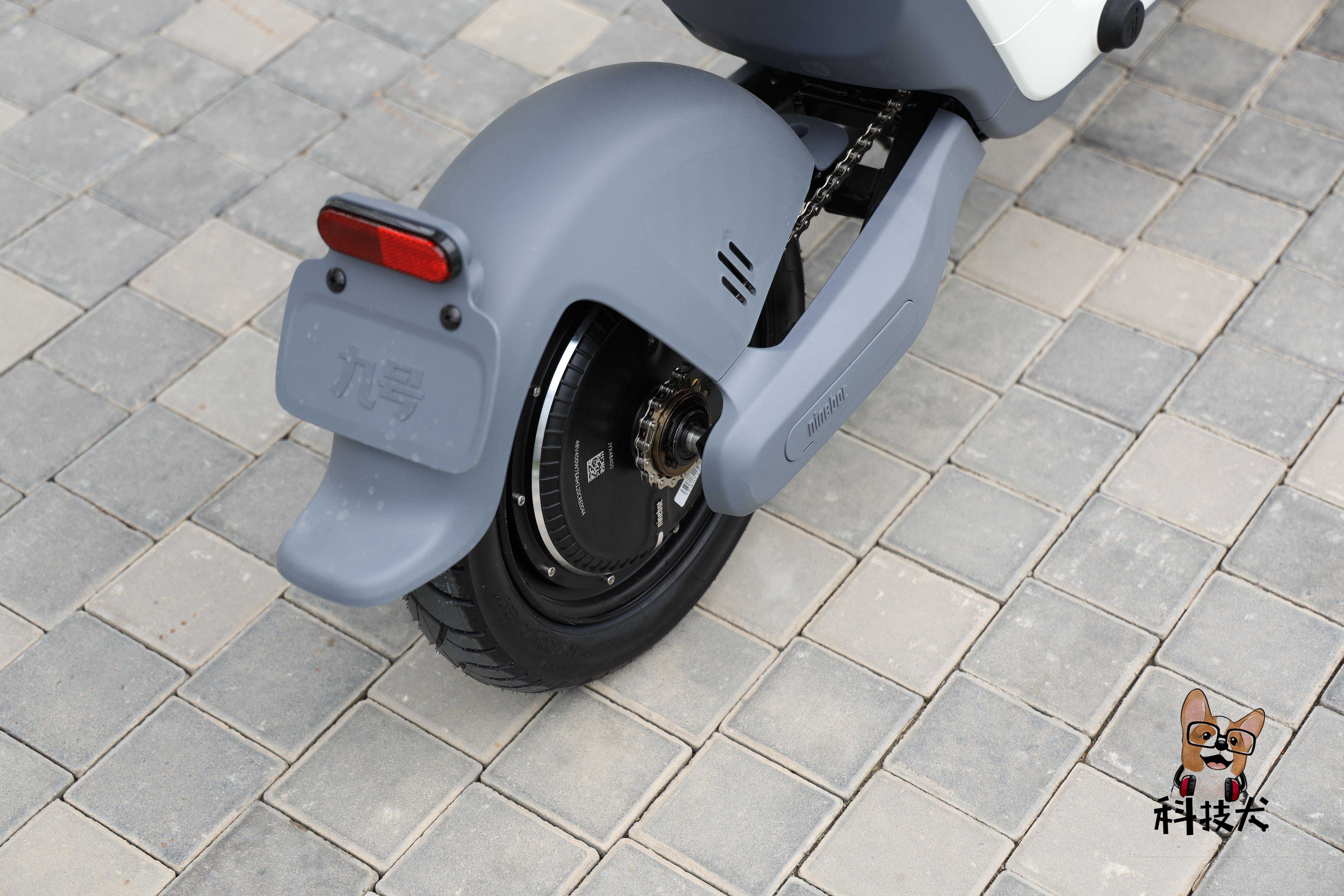 九号电动C配备的是定制48V无刷电机,额定功率400W,峰值扭矩54N·m,最高时速25km/h(新国标规定)。