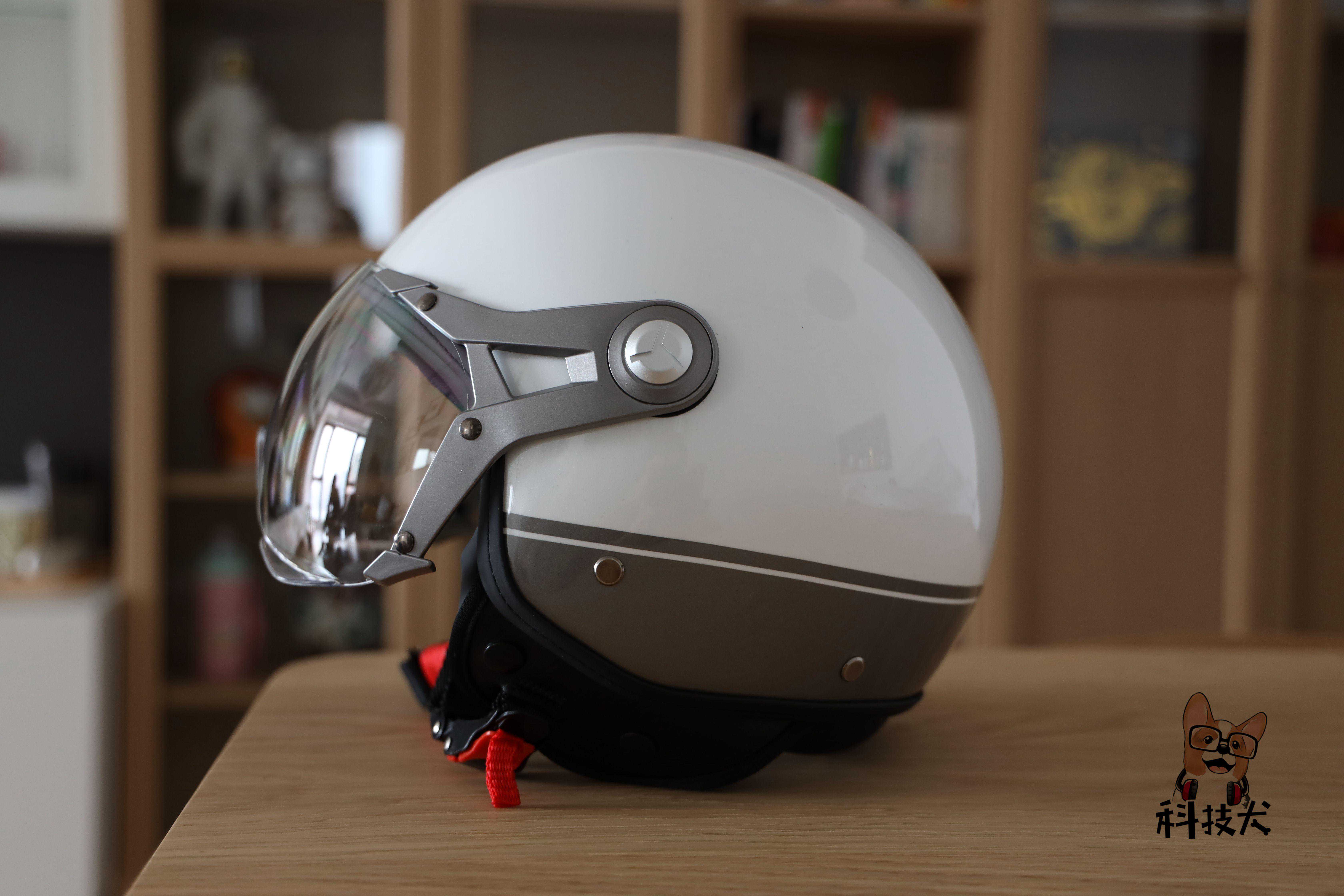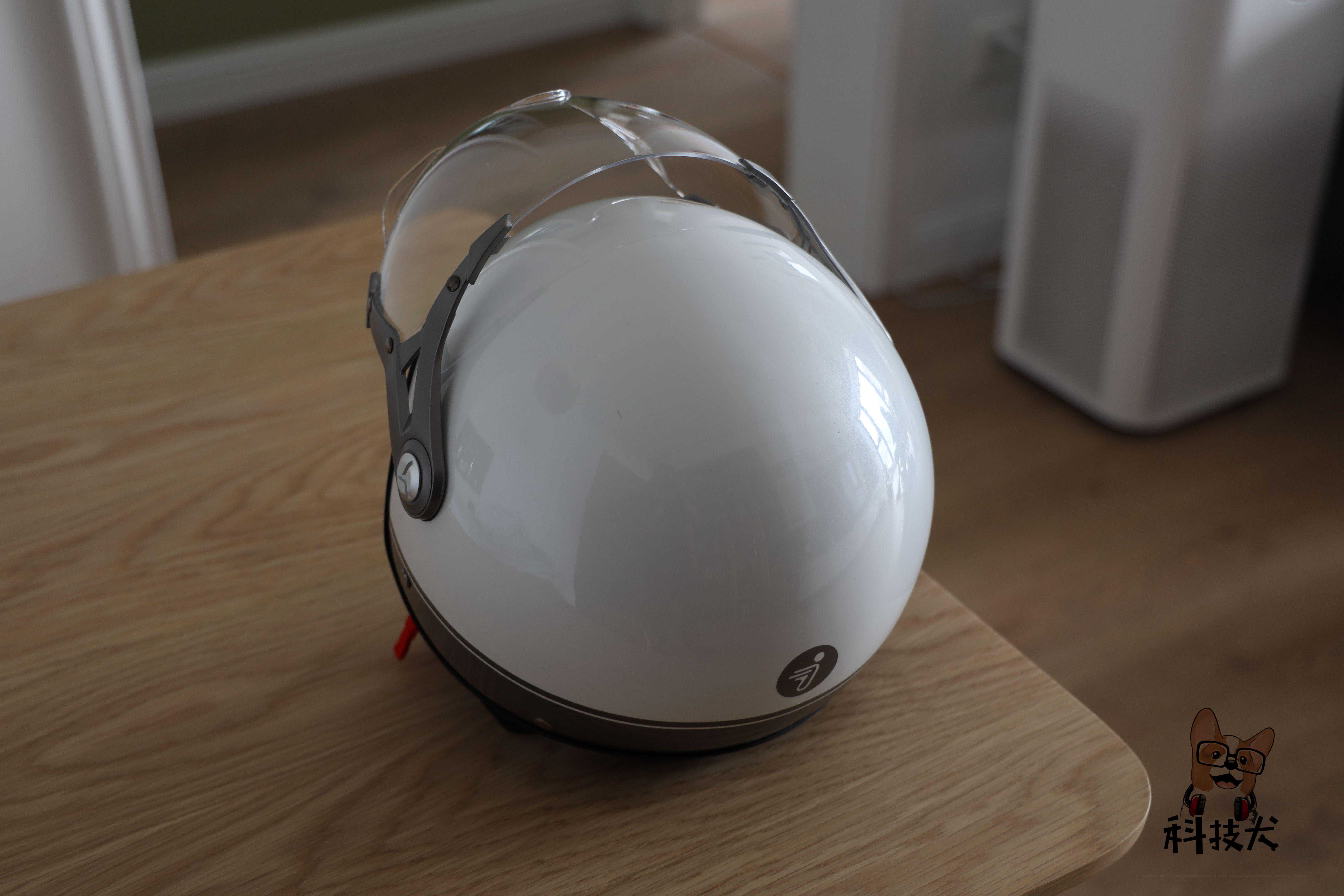 科技犬入手的是白色版本,这样夏季佩戴的话不会晒的太热,九号电动车头盔采用了经典的半盔设计,配备了滑盖式风镜,可以说收放自如,可拆式的内衬套件易于清洗的同时还能起到防止漏风和头盔晃动的作用,将骑行的安全性和舒适性进行了更好的协调。