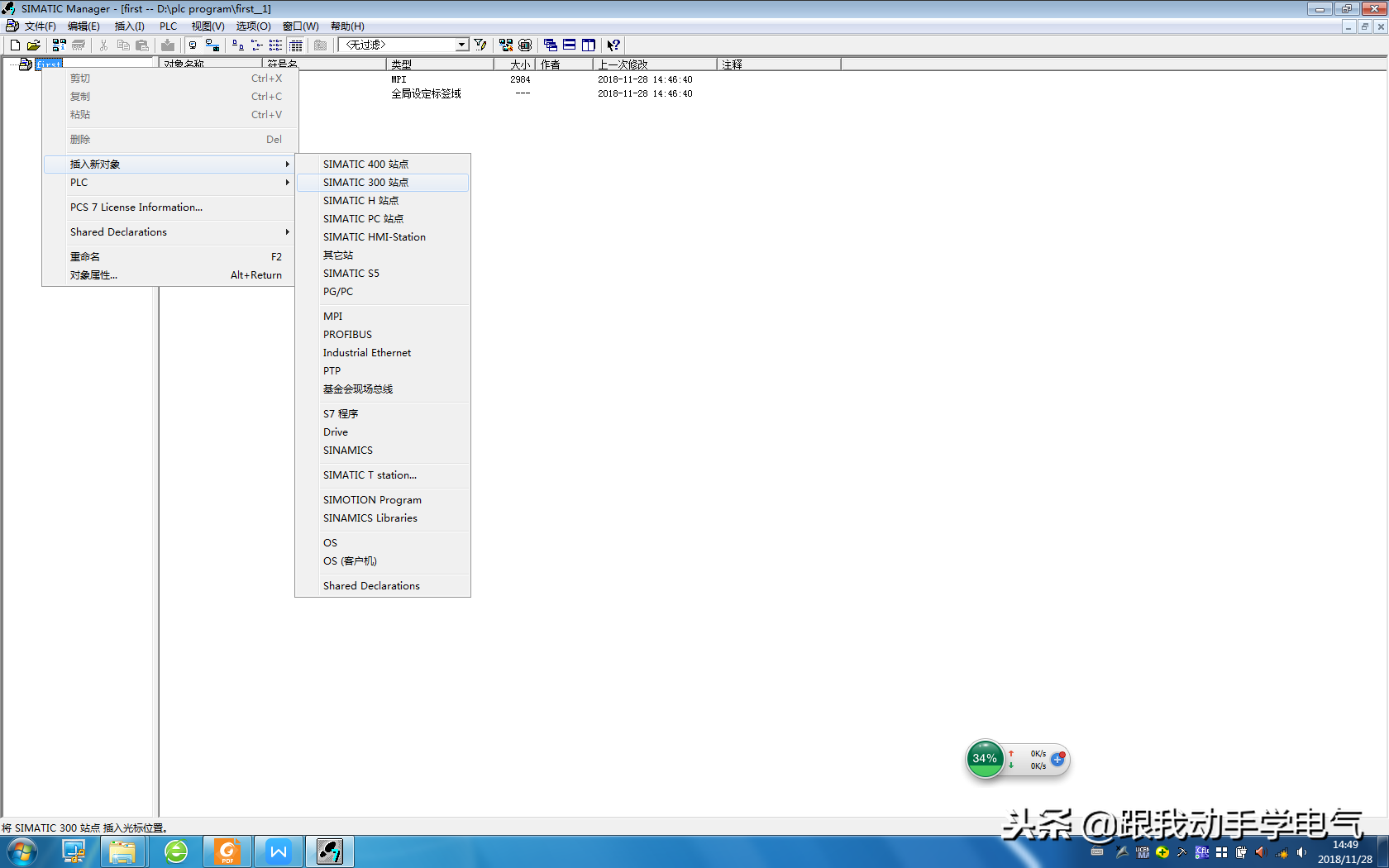 在第一次打开SIMATICMANAGER出现如上图所示的窗口,选择新建项目:如下图所示