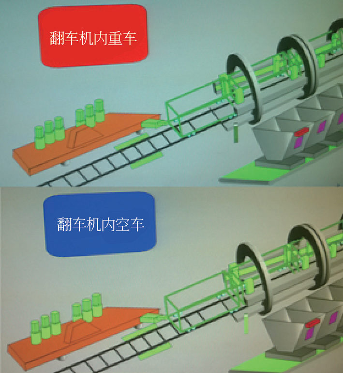 在港口翻车机的卸车作业过程中有时会遇到特殊情况,如“反位车钩”需要摘钩解列作业、个别限位故障导致自动循环中断、机械液压故障导致自动循环中断等,这些情况都需要在自动作业过程中临时终止自动循环加入手动操作,而手动操作后系统恢复自动循环时,操作司机有可能会忘记翻车机转子内是否为重车,出现将重车推出的情况,虽然翻车机出口有专人检查,但此时必须手动将重车重新牵回至翻车机转子内,严重影响作业效率。另外如果推出重车未及时发现将造成生产质量事故,严重影响客户对港方的信任,出现客户流失的严重后果。