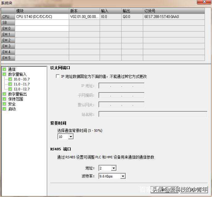 项目树:项目树是我们打开的项目的一个总览,这个项目树里面包括硬件的组态,还有一些向导的选择,项目组态是STEP7-MicroWINSMART比200系列PLC编程软件更加方便的一点新颖设计,我们可以直接在这个硬件组态里面对我们所选用的设备进行组态,可以选择我们的CPU,信号板、扩展模块等等,还可以对我们的输入输出I/O点设置,比如设置输入点要进行脉冲捕捉,等等,都是在这里面进行设置的。