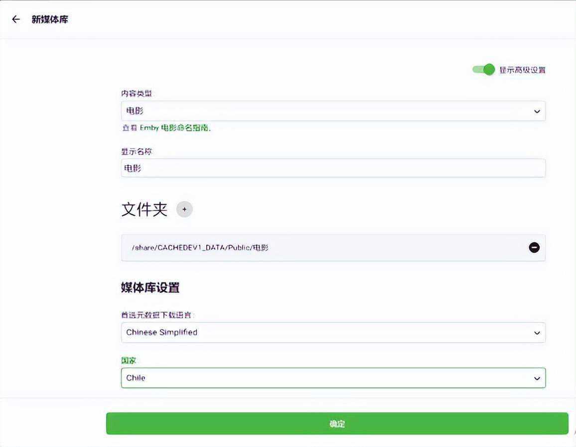 这里需要注意,需要选择文件夹的类型,根据您的情况看看是选择电影?电视节目?音乐?还是其他。其次,语言选择中文。