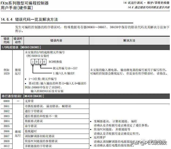 通过阅读本文了解三菱FX3UPLC上的指示灯分别代表什么,以及正常工作和出现错误时指示灯的状态。还有出现错误时如何查看错误代码及处理方法。