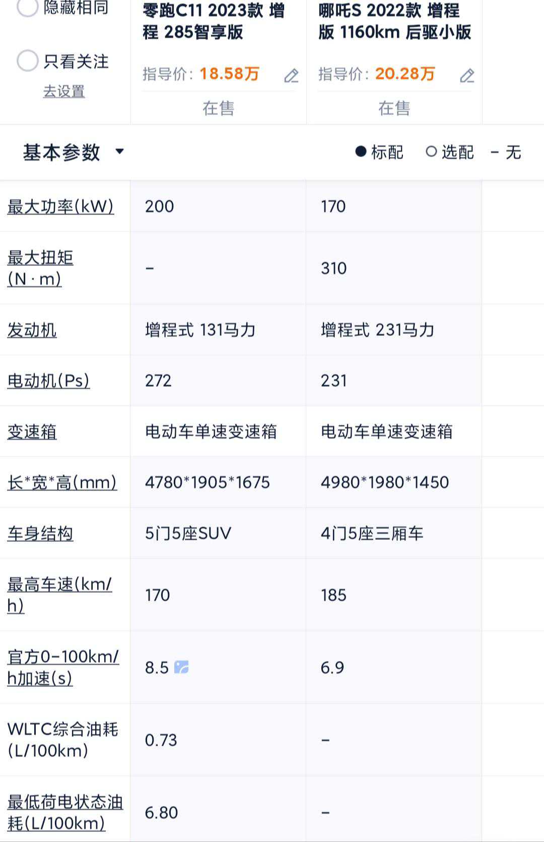 动力方面,以售价为18.58万元的最高配车型零跑C11增程285智享版为例,这款车的零百公里加速所需时间为8.5秒,馈电状态下的零百公里加速所需时间在9秒以上。对比去年7月份上市、售价为20.28万元的哪吒S增程版1160km后驱,这款车的零百公里加速所需时间为6.9秒。要知道,6秒级与8秒级的起步和驾驶中加速的驾驶感相差甚远。更何况,零跑C11增程还比哪吒S增程晚上市了半年多的时间,其动力表现理应更优越。如此来看,零跑C11的动力表现不尽如人意。