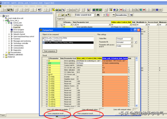 3.比较在线的项目参数与出厂初始参数的不同