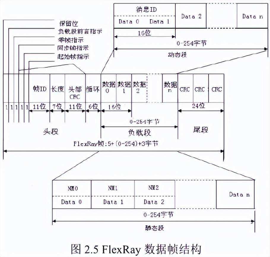 (2)负载段是用于传送数据的部分,FlexRay有效负载段包含0~254个字节数据。