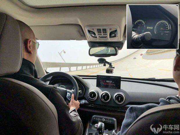 图:高环的项目在国内自主品牌的试驾环节并不多见,WEYP8以240公里每小时的速度在高环上表现的很稳健,入弯出弯的感觉也很从容,最让人惊喜的是,以这个速度行驶时虽然胎噪风噪非常大,但是实际的感受要比预想的好得多,在车内噪音并没有影响到车内人员的沟通。
