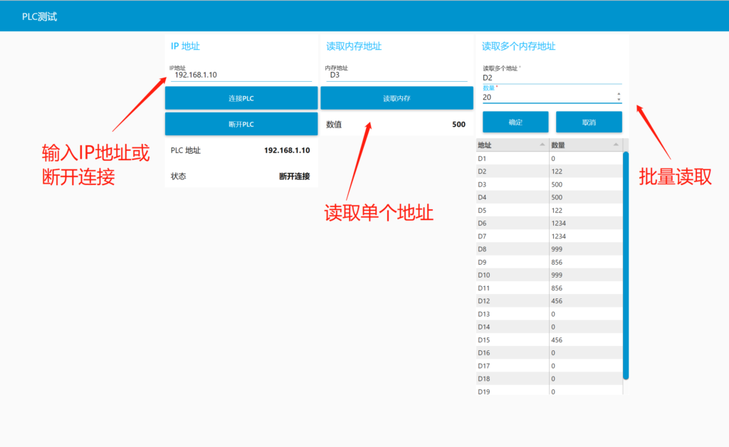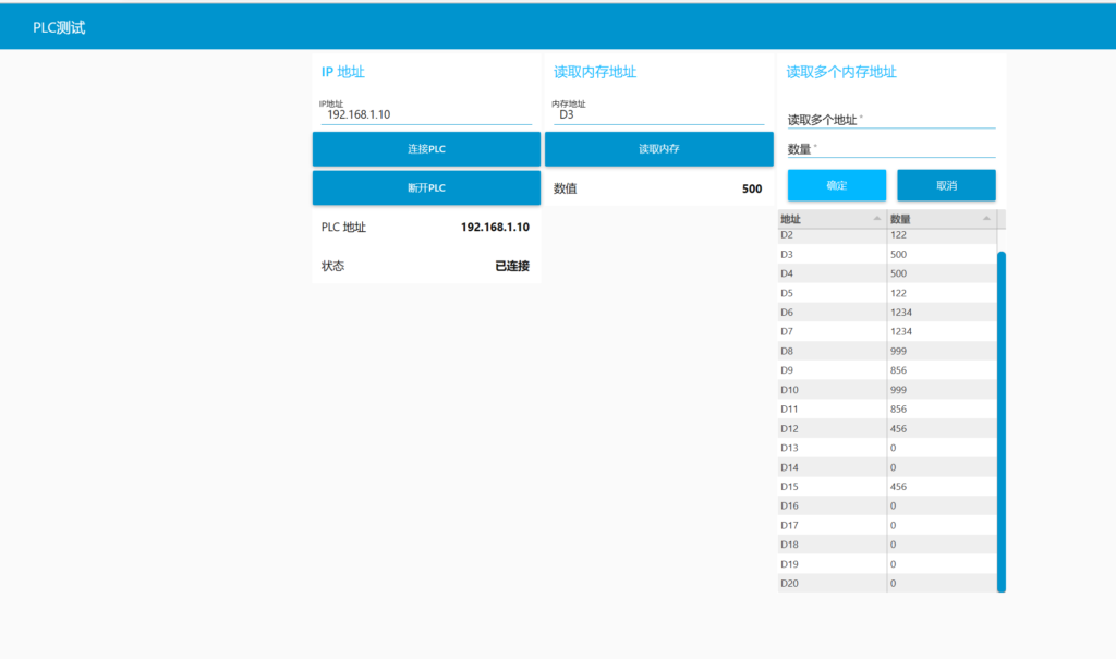 本文讲述如何利用node-red与欧姆龙CP1H进行以太网连接,读取PLC地址数值或多个读取,网页效果图如下。