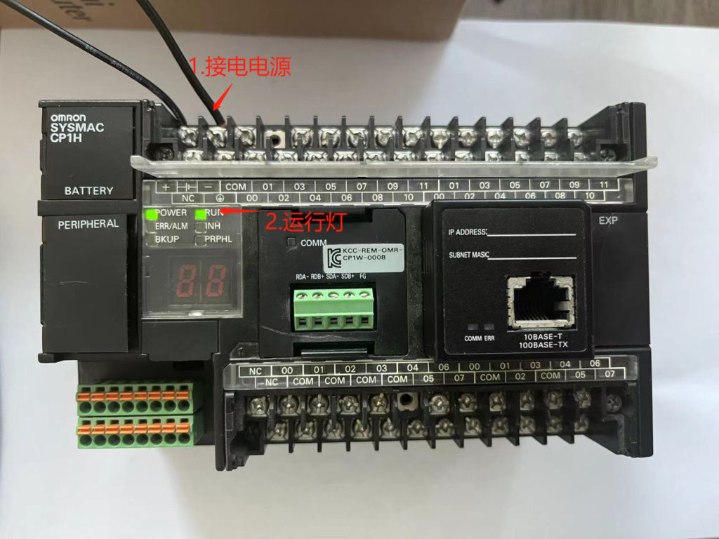 网页效果图如上,下面开始讲解图上功能该如何制作,首先准备一个欧姆龙PLC,型号为CP1H,该型号图示如下。