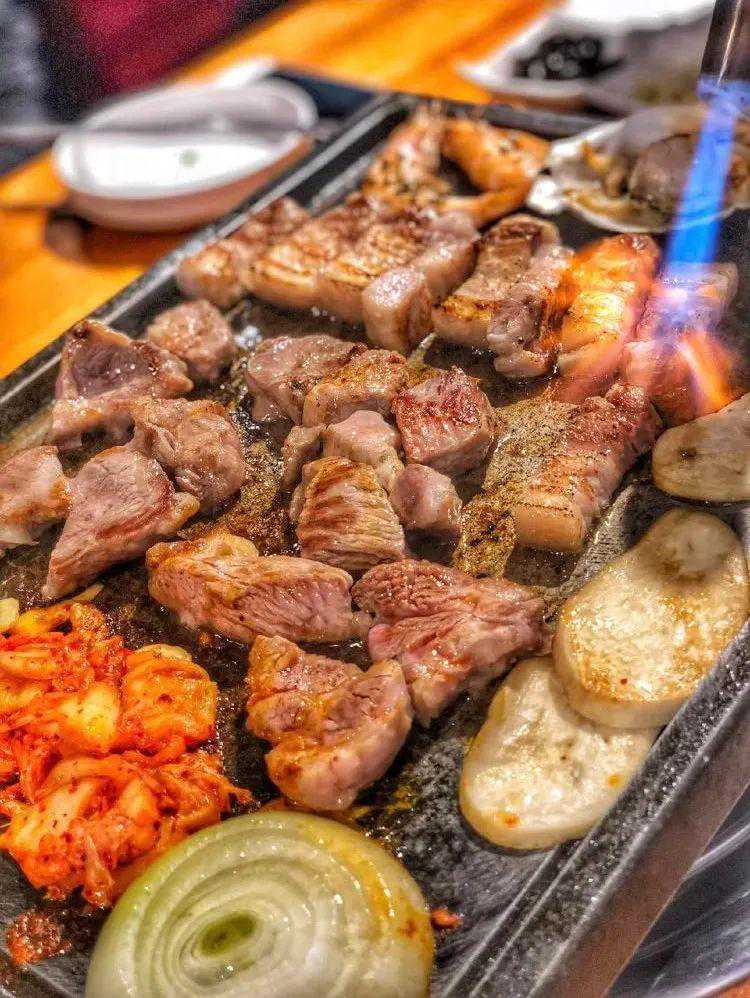 老板为了还原原汁原味的韩国烤肉店,把当地的石板烤盘也搬到了上海,随便怎么滚菜单都能吃出韩国味,不会踩雷!