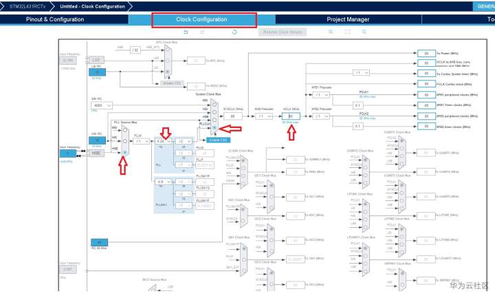 STM32L431RCT6系统时钟最大可以为80MHz,我们配置到最大即可