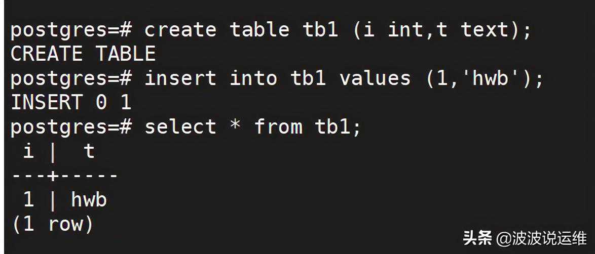 createtabletb1(iint,ttext);brinsertintotb1values(1,'hwb');