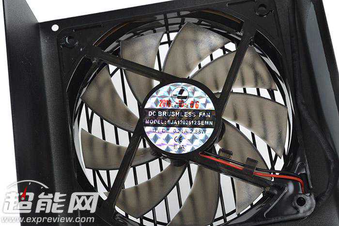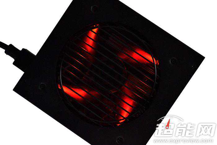 先马实力先锋500W电源配置有带红色LED灯的12cm散热风扇并支持温控调速
